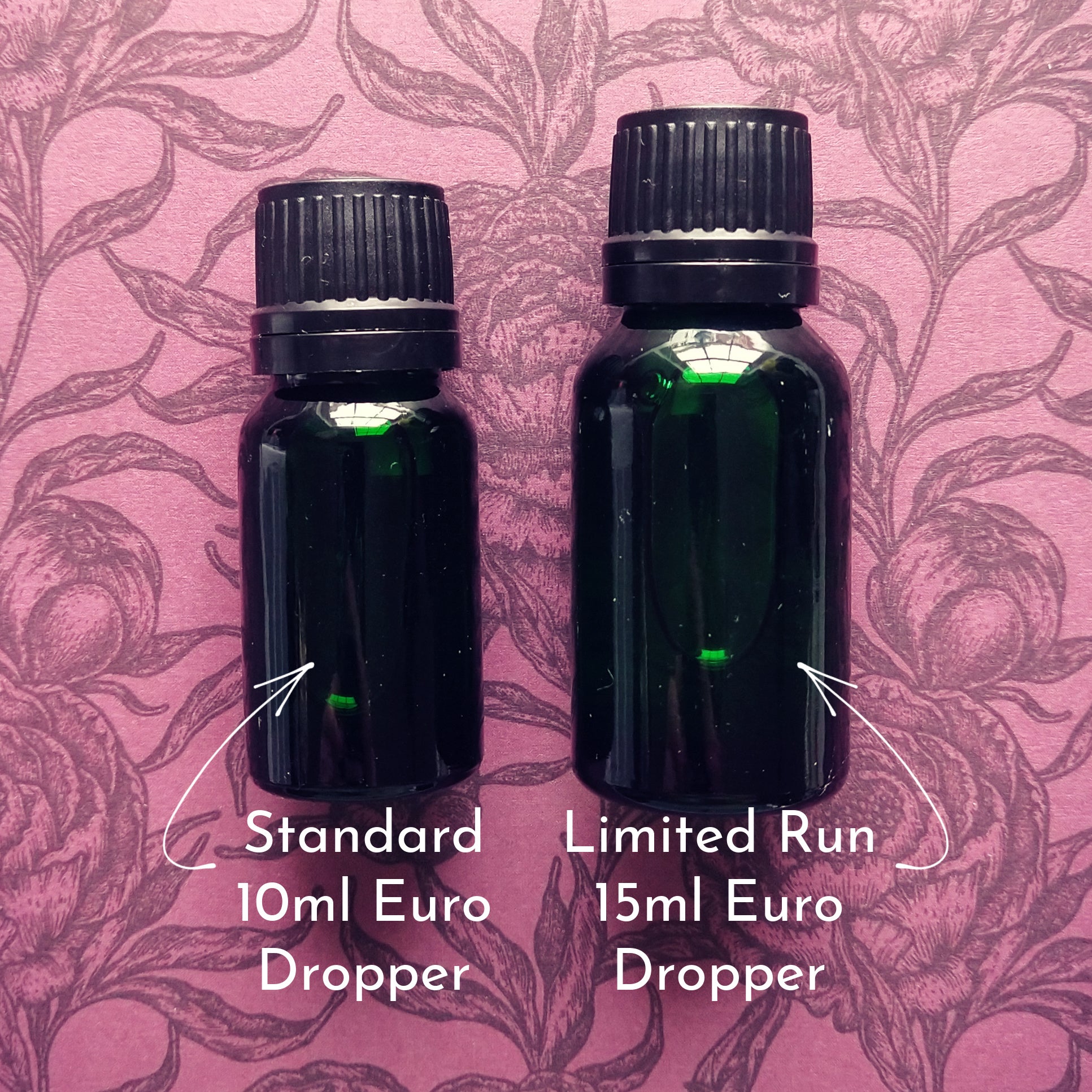 Available in perfume oil: 1 ml sample size, 4 ml dram, 10 ml Euro Dropper (with reducer cap), or 15 ml Euro Dropper (with reducer cap, limited run for March 2026).